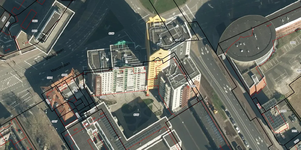 Het perceel waarop Marconilaan 3-07 staat heeft een oppervlakte van 3740 m². Dit is een zeer groot perceel. De perceeloppervlakte wordt geregistreerd door het Kadaster. Gedetailleerde informatie over de maten van dit perceel kunt u vinden in het rapport Kadastrale kaart met maatvoering van Marconilaan 3-07.