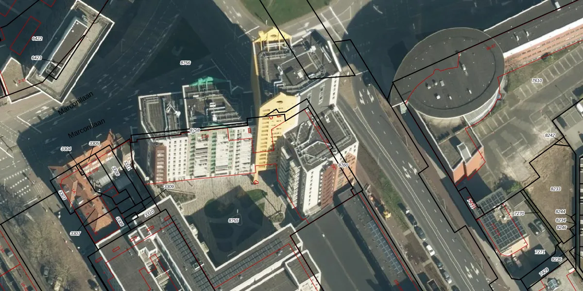 Marconilaan 3-17 is gelegen op kadastraal perceel WSL01G8755. Deze kadastrale aanduiding is uniek en wordt gebruikt door het Kadaster om eigendomsrechten en andere zakelijke rechten vast te leggen. Het perceel maakt onderdeel uit van de kadastrale gemeente Woensel.