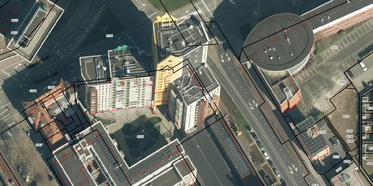 Marconilaan 3-21 is gelegen op kadastraal perceel WSL01G8755. Deze kadastrale aanduiding is uniek en wordt gebruikt door het Kadaster om eigendomsrechten en andere zakelijke rechten vast te leggen. Het perceel maakt onderdeel uit van de kadastrale gemeente Woensel.