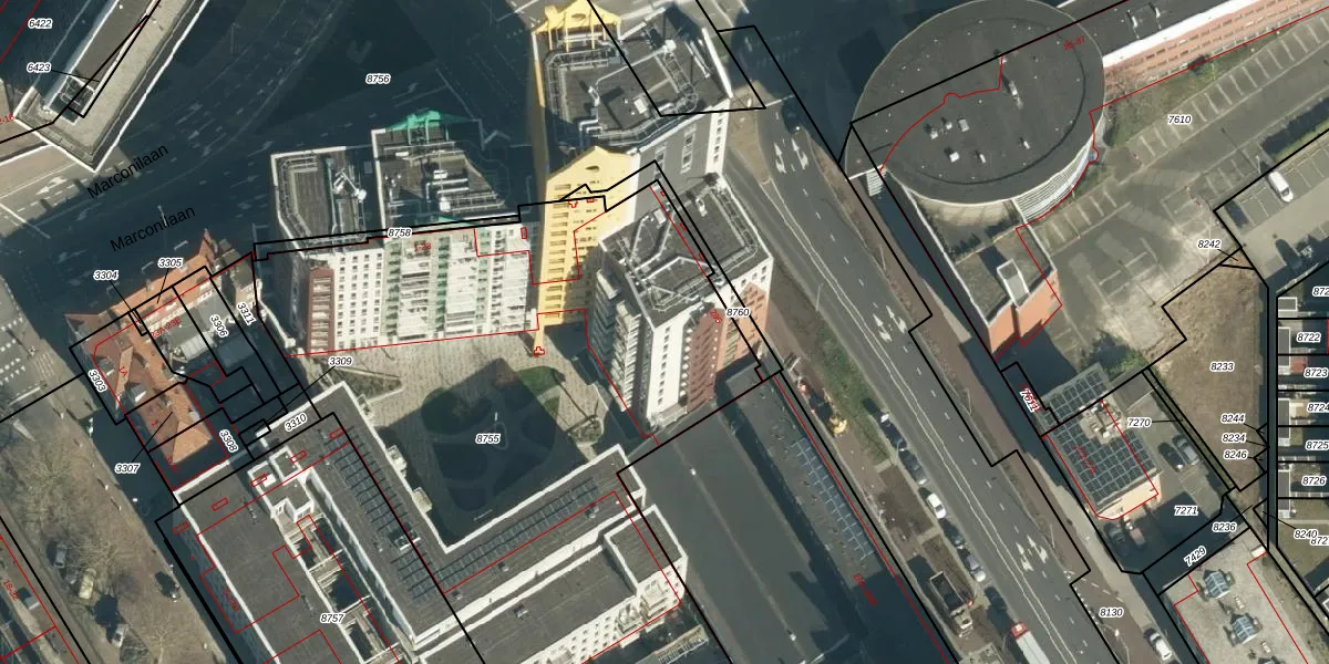Marconilaan 3-37 is gelegen op kadastraal perceel WSL01G8755. Deze kadastrale aanduiding is uniek en wordt gebruikt door het Kadaster om eigendomsrechten en andere zakelijke rechten vast te leggen. Het perceel maakt onderdeel uit van de kadastrale gemeente Woensel.