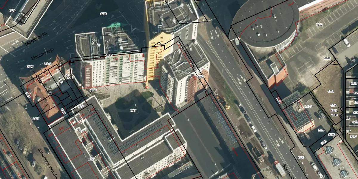 Marconilaan 3-48 is gelegen op kadastraal perceel WSL01G8755. Deze kadastrale aanduiding is uniek en wordt gebruikt door het Kadaster om eigendomsrechten en andere zakelijke rechten vast te leggen. Het perceel maakt onderdeel uit van de kadastrale gemeente Woensel.