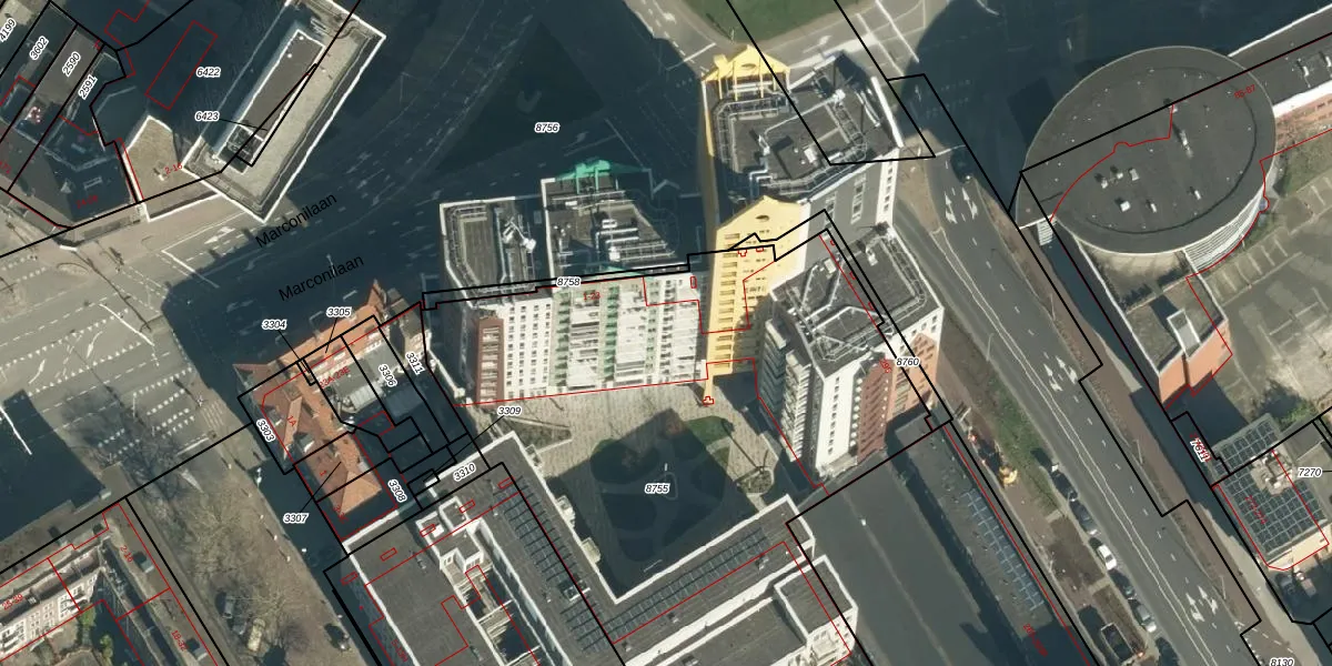 Marconilaan 3-52 is gelegen op kadastraal perceel WSL01G8755. Deze kadastrale aanduiding is uniek en wordt gebruikt door het Kadaster om eigendomsrechten en andere zakelijke rechten vast te leggen. Het perceel maakt onderdeel uit van de kadastrale gemeente Woensel.