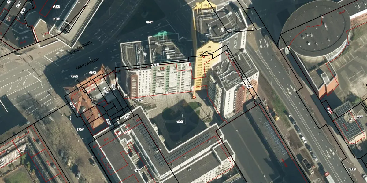 Marconilaan 3-70 is gelegen op kadastraal perceel WSL01G8755. Deze kadastrale aanduiding is uniek en wordt gebruikt door het Kadaster om eigendomsrechten en andere zakelijke rechten vast te leggen. Het perceel maakt onderdeel uit van de kadastrale gemeente Woensel.