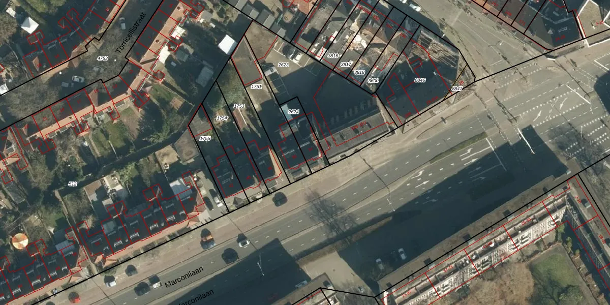 Marconilaan 34 is gelegen op kadastraal perceel WSL01G2624. Deze kadastrale aanduiding is uniek en wordt gebruikt door het Kadaster om eigendomsrechten en andere zakelijke rechten vast te leggen. Het perceel maakt onderdeel uit van de kadastrale gemeente Woensel.