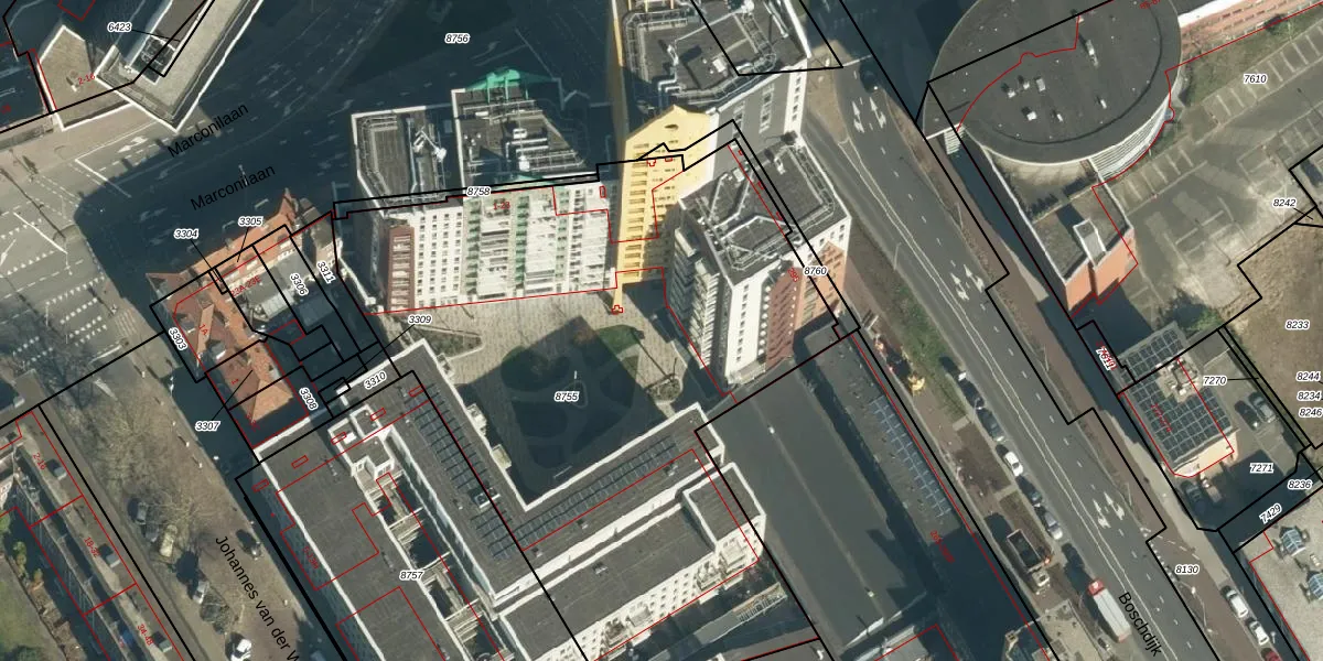 Marconilaan 5-12 is gelegen op kadastraal perceel WSL01G8755. Deze kadastrale aanduiding is uniek en wordt gebruikt door het Kadaster om eigendomsrechten en andere zakelijke rechten vast te leggen. Het perceel maakt onderdeel uit van de kadastrale gemeente Woensel.