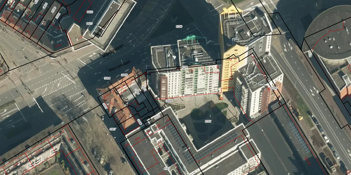 Marconilaan 5-21 is gelegen op kadastraal perceel WSL01G8755. Deze kadastrale aanduiding is uniek en wordt gebruikt door het Kadaster om eigendomsrechten en andere zakelijke rechten vast te leggen. Het perceel maakt onderdeel uit van de kadastrale gemeente Woensel.
