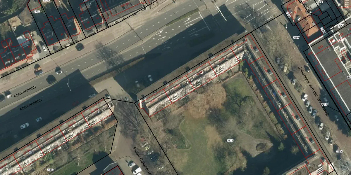Het perceel waarop Marconilaan 63 staat heeft een oppervlakte van 7403 m². Dit is een zeer groot perceel. De perceeloppervlakte wordt geregistreerd door het Kadaster. Gedetailleerde informatie over de maten van dit perceel kunt u vinden in het rapport Kadastrale kaart met maatvoering van Marconilaan 63.