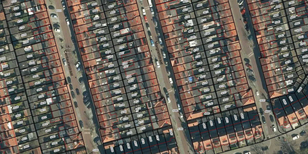 Margrietstraat 54 is gelegen op kadastraal perceel STM00D6454. Deze kadastrale aanduiding is uniek en wordt gebruikt door het Kadaster om eigendomsrechten en andere zakelijke rechten vast te leggen. Het perceel maakt onderdeel uit van de kadastrale gemeente Stratum.