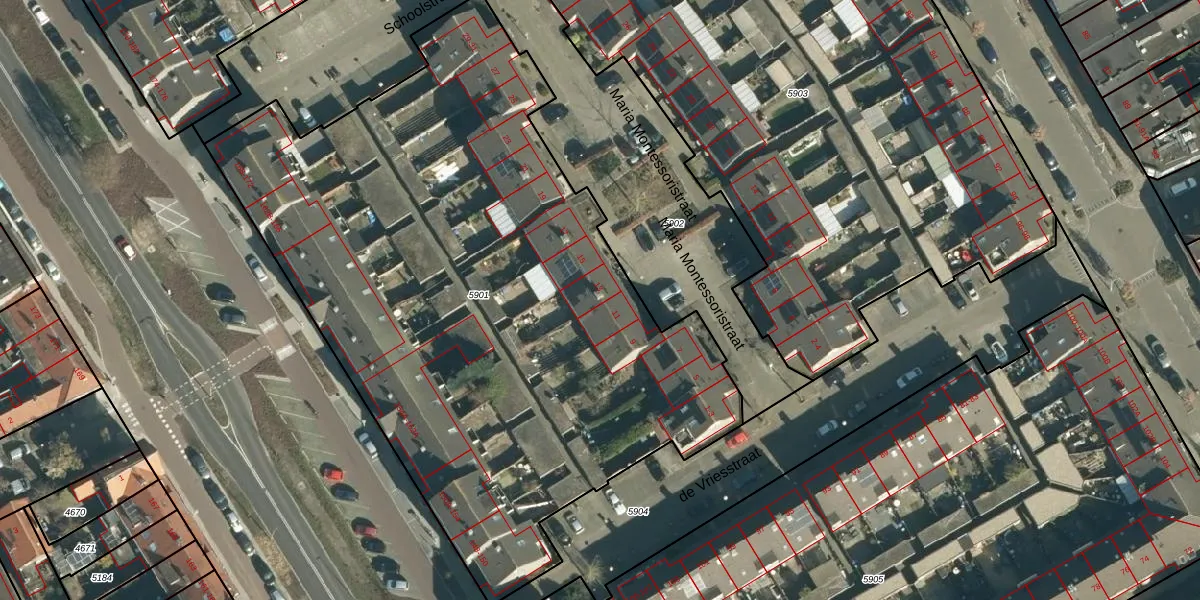 Maria Montessoristraat 13 is gelegen op kadastraal perceel WSL01G5901. Deze kadastrale aanduiding is uniek en wordt gebruikt door het Kadaster om eigendomsrechten en andere zakelijke rechten vast te leggen. Het perceel maakt onderdeel uit van de kadastrale gemeente Woensel.