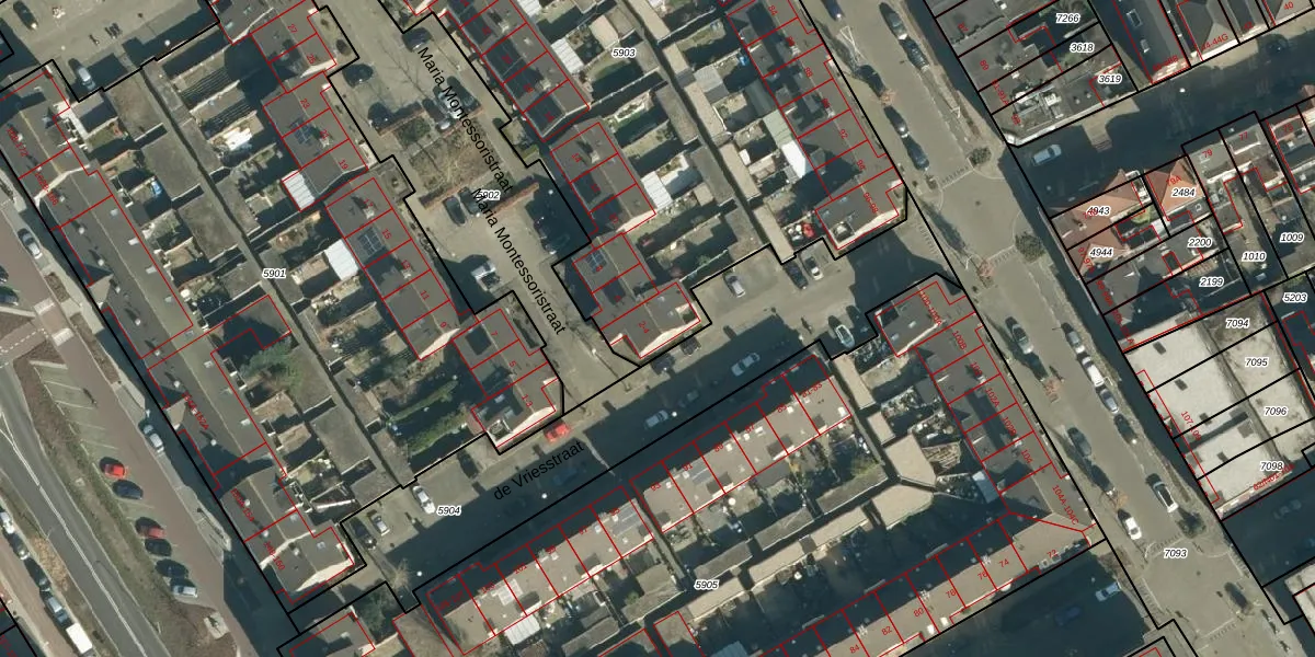 Maria Montessoristraat 2 is gelegen op kadastraal perceel WSL01G5903. Deze kadastrale aanduiding is uniek en wordt gebruikt door het Kadaster om eigendomsrechten en andere zakelijke rechten vast te leggen. Het perceel maakt onderdeel uit van de kadastrale gemeente Woensel.