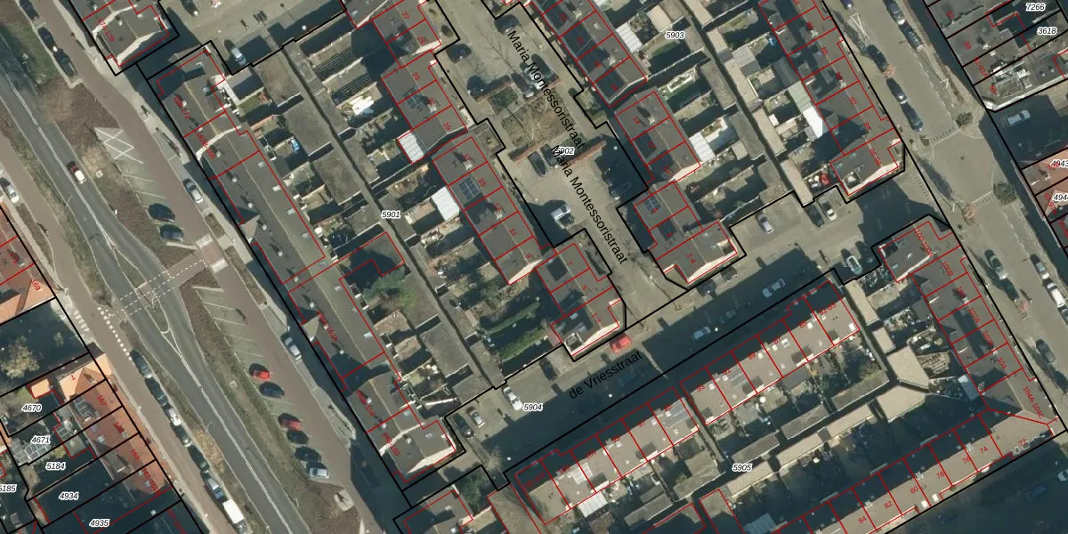 Maria Montessoristraat 9 is gelegen op kadastraal perceel WSL01G5901. Deze kadastrale aanduiding is uniek en wordt gebruikt door het Kadaster om eigendomsrechten en andere zakelijke rechten vast te leggen. Het perceel maakt onderdeel uit van de kadastrale gemeente Woensel.