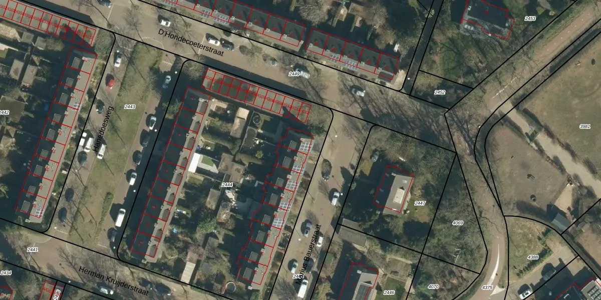 Het perceel waarop Marius Bauerstraat 2 staat heeft een oppervlakte van 3755 m². Dit is een zeer groot perceel. De perceeloppervlakte wordt geregistreerd door het Kadaster. Gedetailleerde informatie over de maten van dit perceel kunt u vinden in het rapport Kadastrale kaart met maatvoering van Marius Bauerstraat 2.