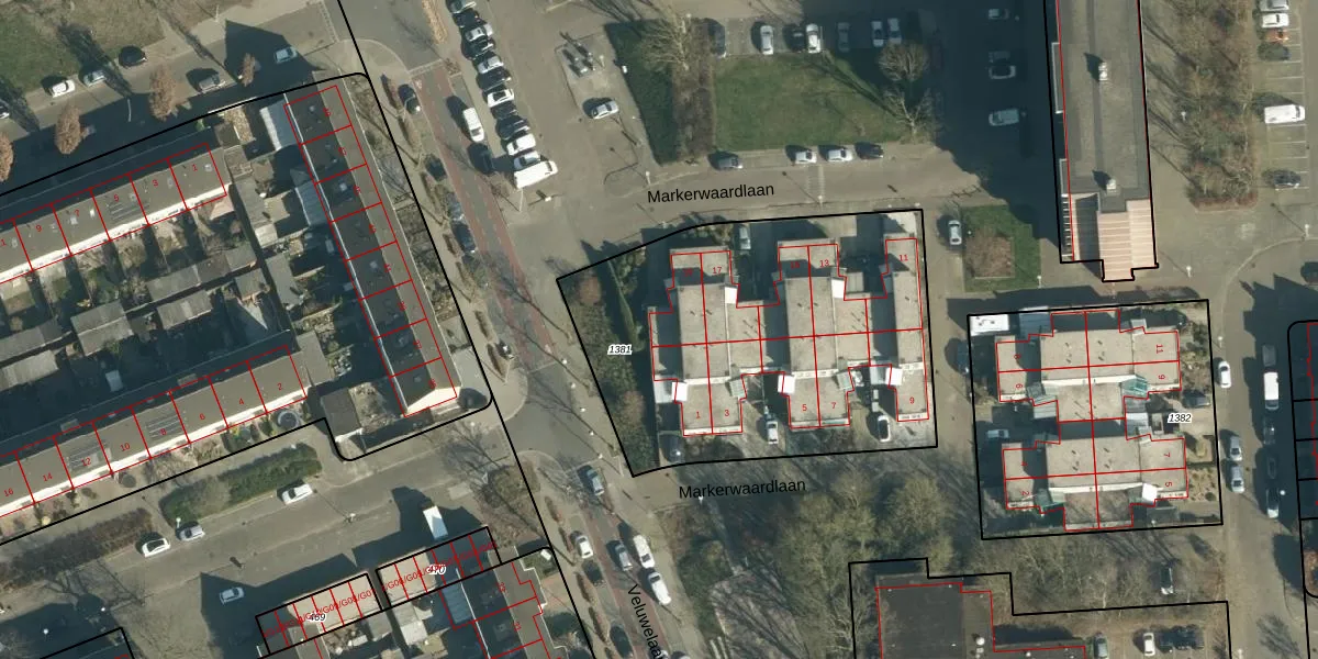 Het perceel waarop Markerwaardlaan 19 staat heeft een oppervlakte van 1815 m². Dit is een zeer groot perceel. De perceeloppervlakte wordt geregistreerd door het Kadaster. Gedetailleerde informatie over de maten van dit perceel kunt u vinden in het rapport Kadastrale kaart met maatvoering van Markerwaardlaan 19.