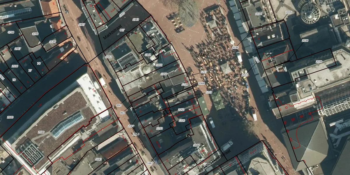 Het perceel waarop Markt 21-D staat heeft een oppervlakte van 159 m². Dit is een middelgroot perceel. De perceeloppervlakte wordt geregistreerd door het Kadaster. Gedetailleerde informatie over de maten van dit perceel kunt u vinden in het rapport Kadastrale kaart met maatvoering van Markt 21-D.