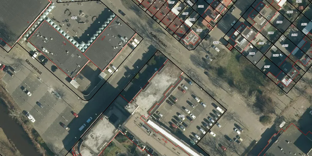 Het perceel waarop Marnestraat 114 staat heeft een oppervlakte van 5176 m². Dit is een zeer groot perceel. De perceeloppervlakte wordt geregistreerd door het Kadaster. Gedetailleerde informatie over de maten van dit perceel kunt u vinden in het rapport Kadastrale kaart met maatvoering van Marnestraat 114.