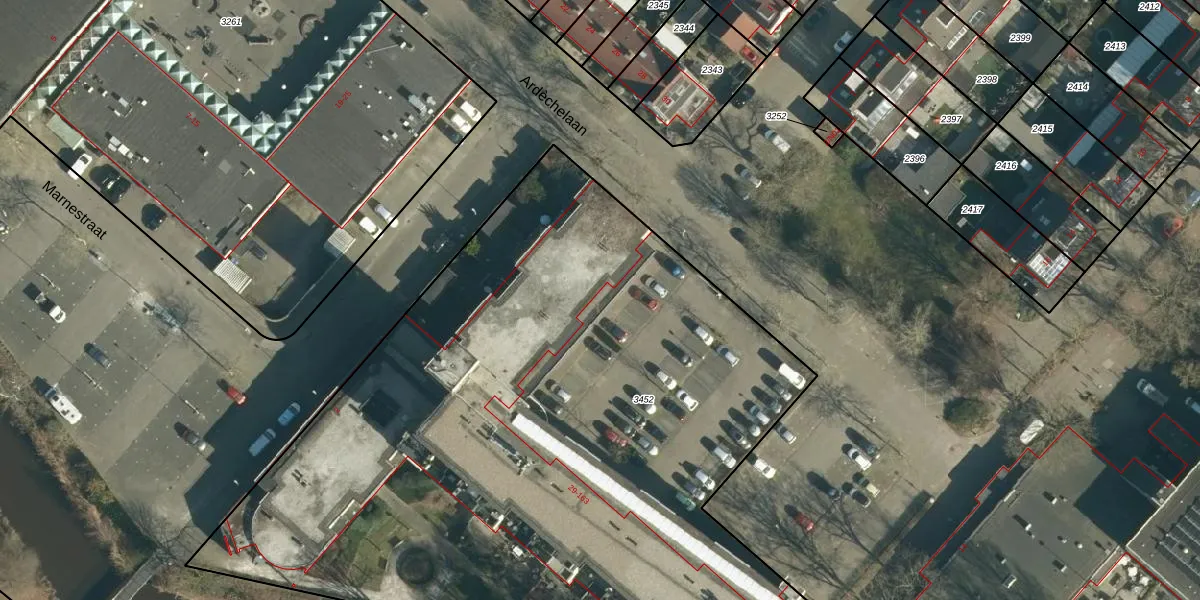 Het perceel waarop Marnestraat 120 staat heeft een oppervlakte van 5176 m². Dit is een zeer groot perceel. De perceeloppervlakte wordt geregistreerd door het Kadaster. Gedetailleerde informatie over de maten van dit perceel kunt u vinden in het rapport Kadastrale kaart met maatvoering van Marnestraat 120.
