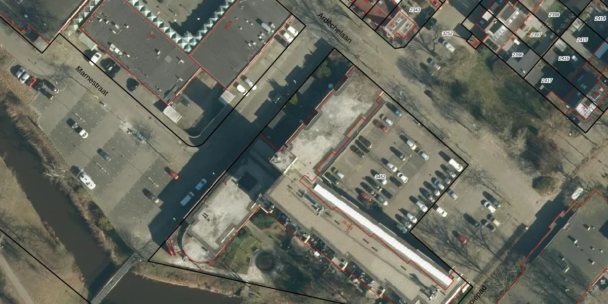 Het perceel waarop Marnestraat 20 staat heeft een oppervlakte van 5176 m². Dit is een zeer groot perceel. De perceeloppervlakte wordt geregistreerd door het Kadaster. Gedetailleerde informatie over de maten van dit perceel kunt u vinden in het rapport Kadastrale kaart met maatvoering van Marnestraat 20.