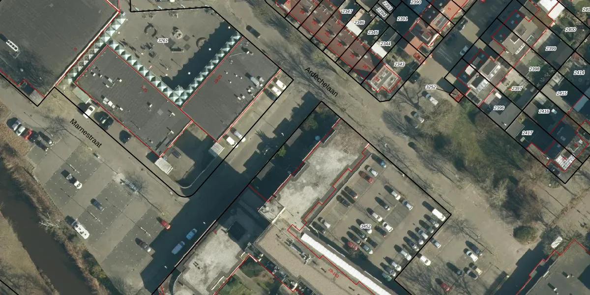 Het perceel waarop Marnestraat 206 staat heeft een oppervlakte van 5176 m². Dit is een zeer groot perceel. De perceeloppervlakte wordt geregistreerd door het Kadaster. Gedetailleerde informatie over de maten van dit perceel kunt u vinden in het rapport Kadastrale kaart met maatvoering van Marnestraat 206.