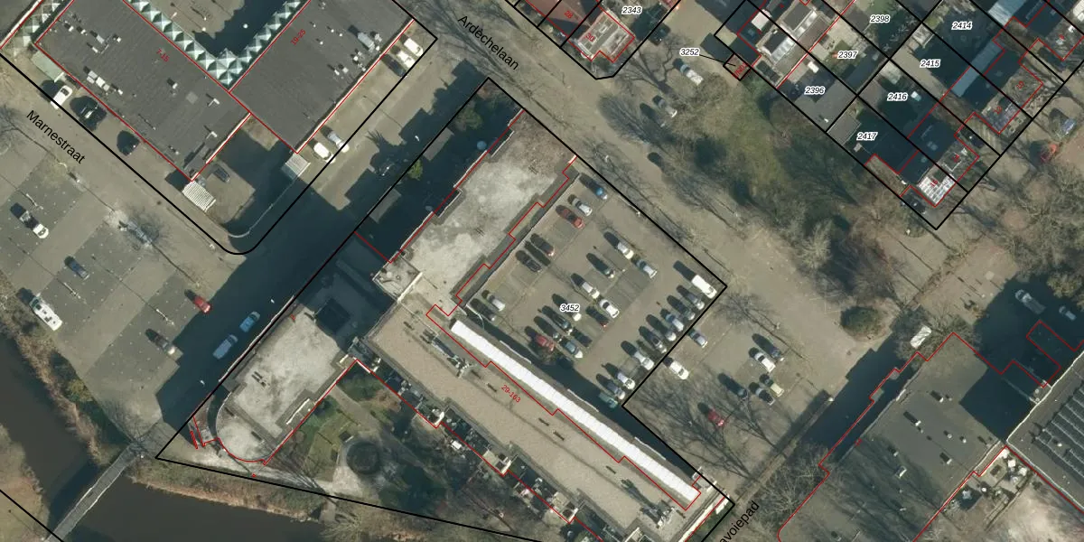 Het perceel waarop Marnestraat 92 staat heeft een oppervlakte van 5176 m². Dit is een zeer groot perceel. De perceeloppervlakte wordt geregistreerd door het Kadaster. Gedetailleerde informatie over de maten van dit perceel kunt u vinden in het rapport Kadastrale kaart met maatvoering van Marnestraat 92.