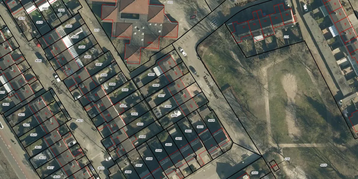 Gebruik de zoekbalk of klik op een perceel voor informatie over de adressen binnen dit perceel.