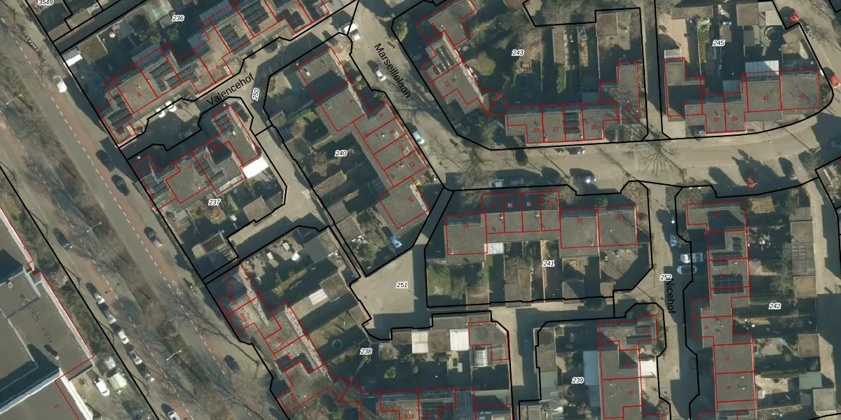 Het perceel waarop Marseillelaan 14 staat heeft een oppervlakte van 1310 m². Dit is een zeer groot perceel. De perceeloppervlakte wordt geregistreerd door het Kadaster. Gedetailleerde informatie over de maten van dit perceel kunt u vinden in het rapport Kadastrale kaart met maatvoering van Marseillelaan 14.