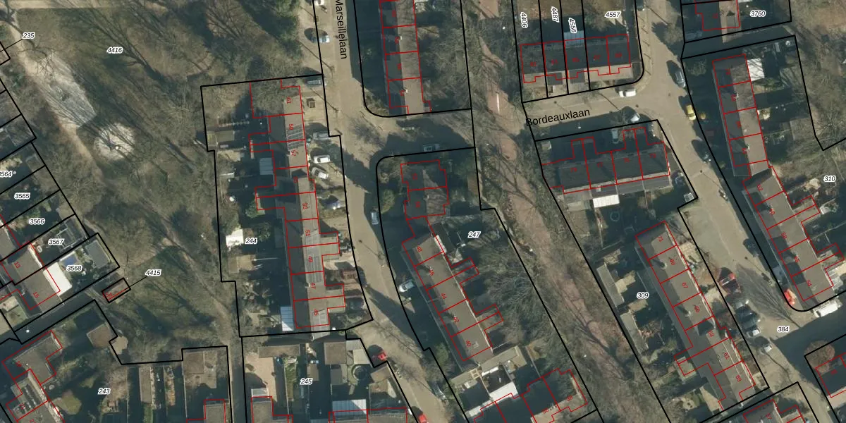 Marseillelaan 50 is gelegen op kadastraal perceel WSL01S247. Deze kadastrale aanduiding is uniek en wordt gebruikt door het Kadaster om eigendomsrechten en andere zakelijke rechten vast te leggen. Het perceel maakt onderdeel uit van de kadastrale gemeente Woensel.