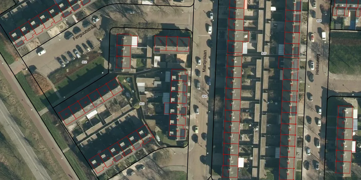 Martijnlaan 12 is gelegen op kadastraal perceel WSL01P803. Deze kadastrale aanduiding is uniek en wordt gebruikt door het Kadaster om eigendomsrechten en andere zakelijke rechten vast te leggen. Het perceel maakt onderdeel uit van de kadastrale gemeente Woensel.