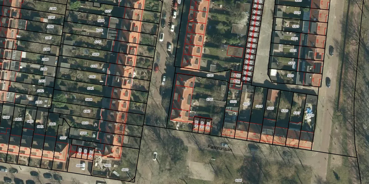 Het perceel waarop Mathijsenlaan 43-A staat heeft een oppervlakte van 825 m². Dit is een groot perceel. De perceeloppervlakte wordt geregistreerd door het Kadaster. Gedetailleerde informatie over de maten van dit perceel kunt u vinden in het rapport Kadastrale kaart met maatvoering van Mathijsenlaan 43-A.