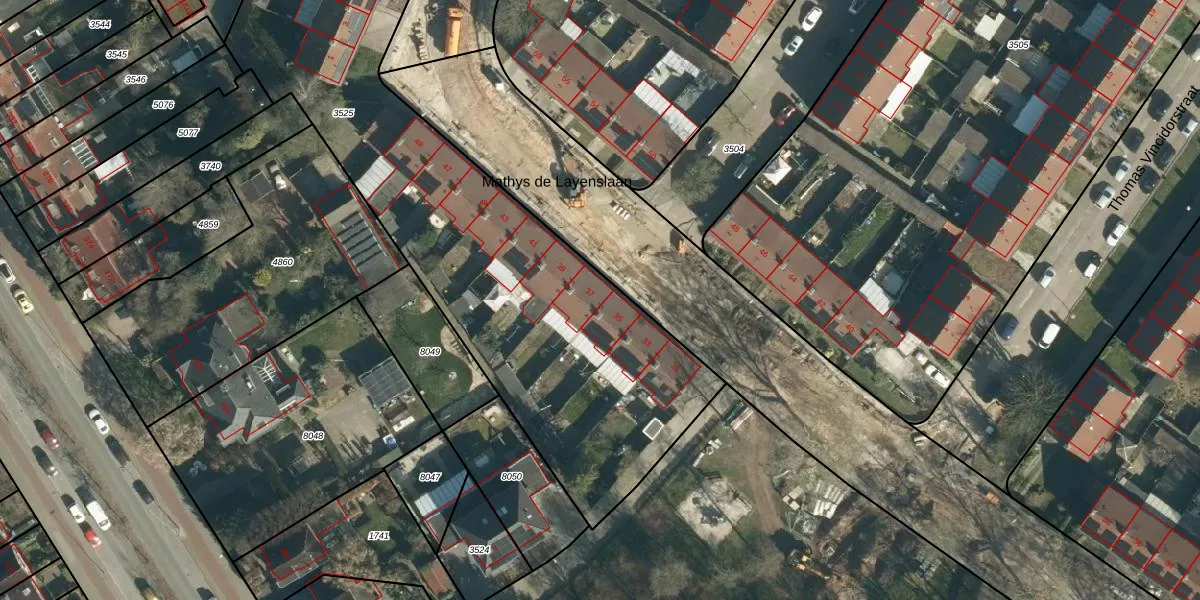 Het perceel waarop Mathys de Layenslaan 37 staat heeft een oppervlakte van 3341 m². Dit is een zeer groot perceel. De perceeloppervlakte wordt geregistreerd door het Kadaster. Gedetailleerde informatie over de maten van dit perceel kunt u vinden in het rapport Kadastrale kaart met maatvoering van Mathys de Layenslaan 37.