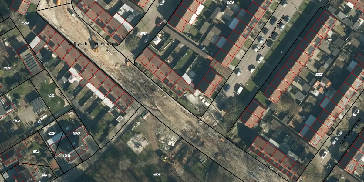 Mathys de Layenslaan 40 is gelegen op kadastraal perceel WSL01G3505. Deze kadastrale aanduiding is uniek en wordt gebruikt door het Kadaster om eigendomsrechten en andere zakelijke rechten vast te leggen. Het perceel maakt onderdeel uit van de kadastrale gemeente Woensel.