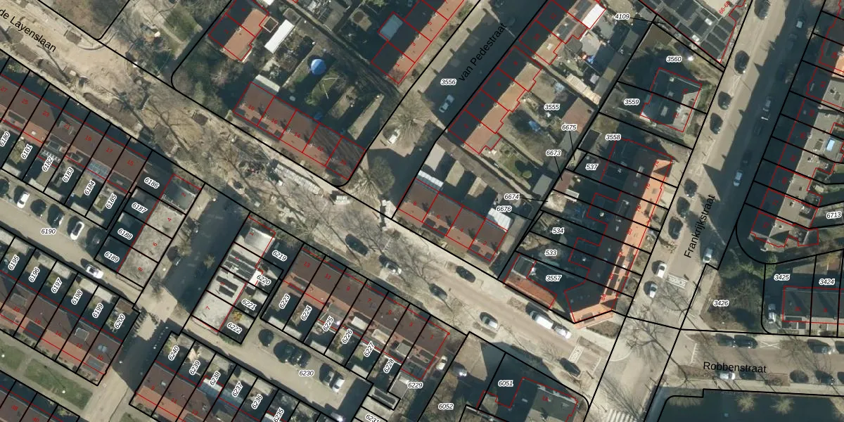 Het perceel waarop Mathys de Layenslaan 8 staat heeft een oppervlakte van 2037 m². Dit is een zeer groot perceel. De perceeloppervlakte wordt geregistreerd door het Kadaster. Gedetailleerde informatie over de maten van dit perceel kunt u vinden in het rapport Kadastrale kaart met maatvoering van Mathys de Layenslaan 8.