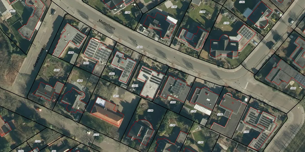 Het perceel waarop Matterhorn 37 staat heeft een oppervlakte van 485 m². Dit is een groot perceel. De perceeloppervlakte wordt geregistreerd door het Kadaster. Gedetailleerde informatie over de maten van dit perceel kunt u vinden in het rapport Kadastrale kaart met maatvoering van Matterhorn 37.