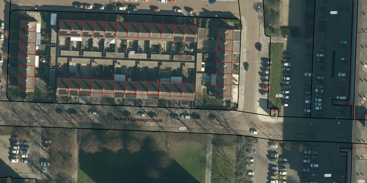 Het perceel waarop Maurits Lijnslagerstraat 23 staat heeft een oppervlakte van 6306 m². Dit is een zeer groot perceel. De perceeloppervlakte wordt geregistreerd door het Kadaster. Gedetailleerde informatie over de maten van dit perceel kunt u vinden in het rapport Kadastrale kaart met maatvoering van Maurits Lijnslagerstraat 23.
