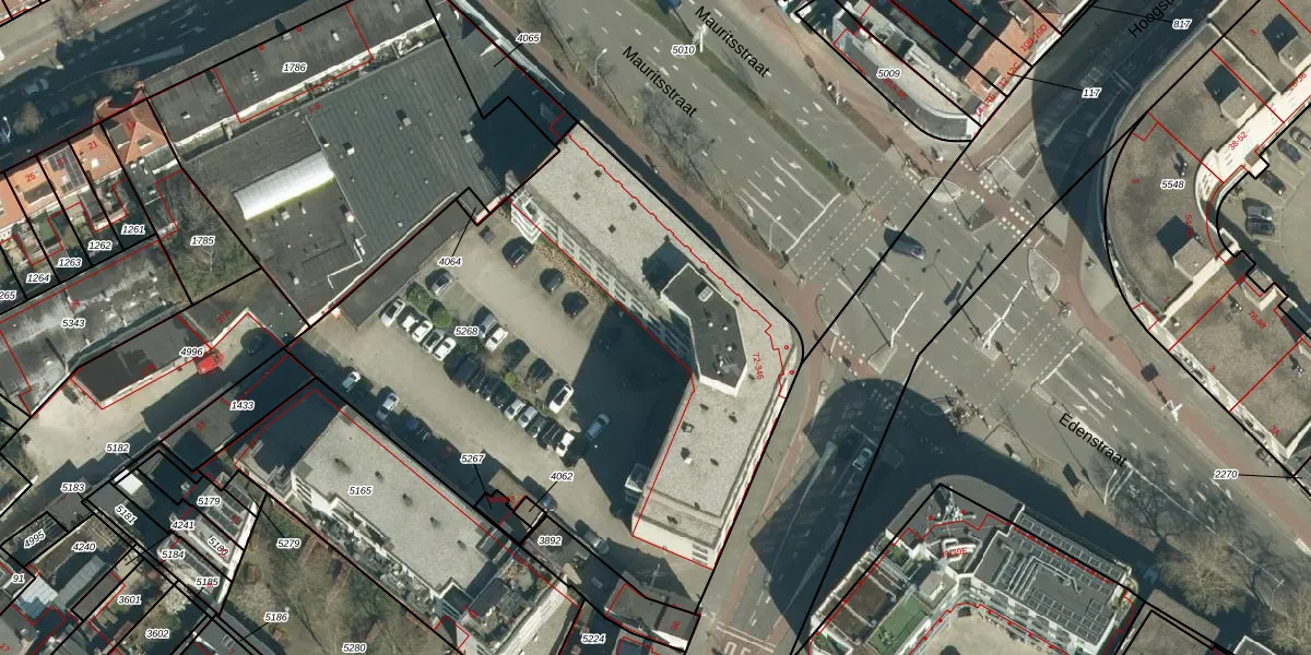 Het perceel waarop Mauritsstraat 110 staat heeft een oppervlakte van 3137 m². Dit is een zeer groot perceel. De perceeloppervlakte wordt geregistreerd door het Kadaster. Gedetailleerde informatie over de maten van dit perceel kunt u vinden in het rapport Kadastrale kaart met maatvoering van Mauritsstraat 110.