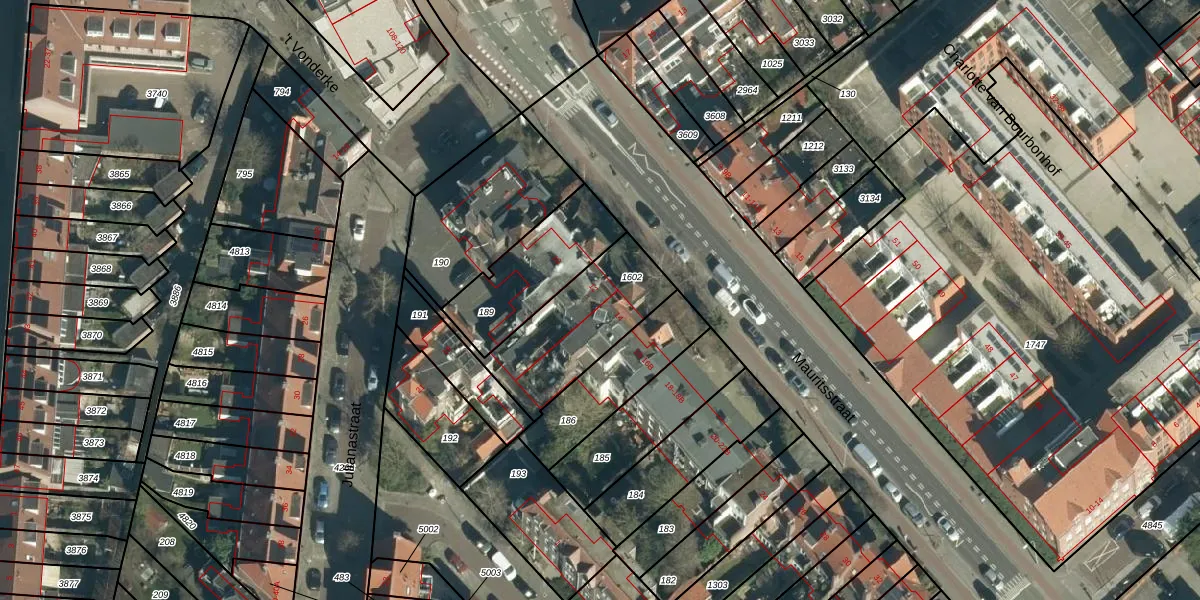 Het perceel waarop Mauritsstraat 12 staat heeft een oppervlakte van 421 m². Dit is een groot perceel. De perceeloppervlakte wordt geregistreerd door het Kadaster. Gedetailleerde informatie over de maten van dit perceel kunt u vinden in het rapport Kadastrale kaart met maatvoering van Mauritsstraat 12.