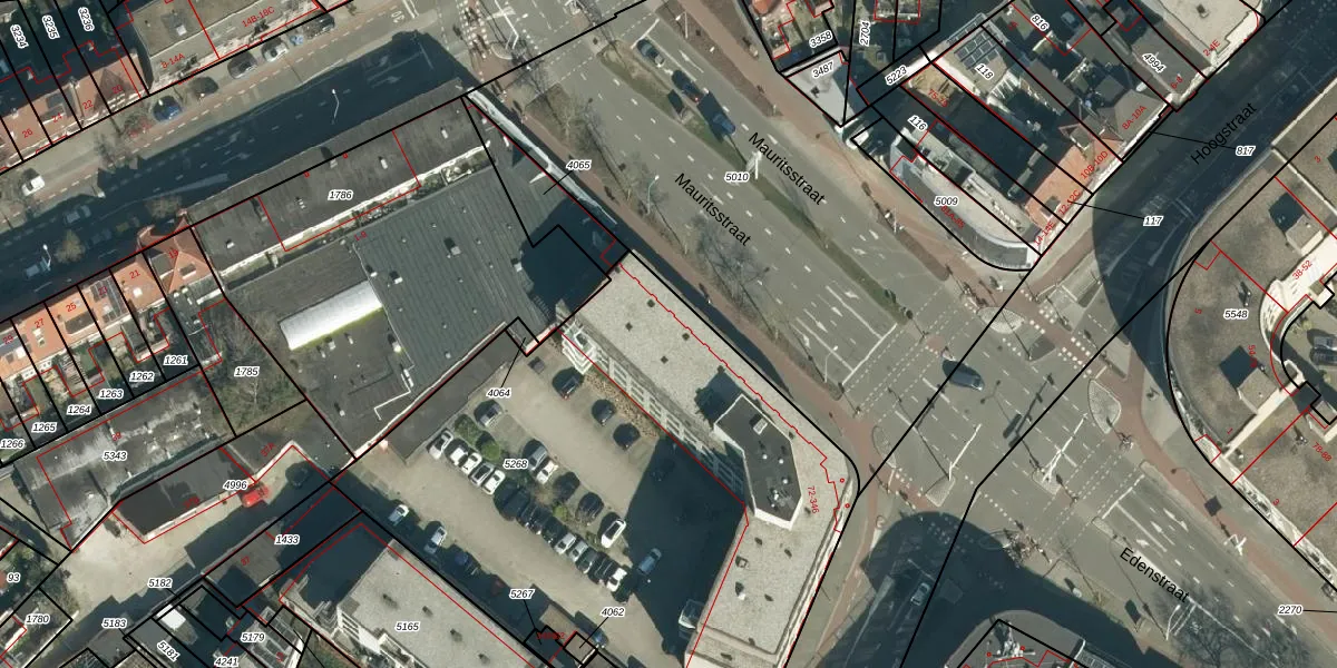 Het perceel waarop Mauritsstraat 158 staat heeft een oppervlakte van 3137 m². Dit is een zeer groot perceel. De perceeloppervlakte wordt geregistreerd door het Kadaster. Gedetailleerde informatie over de maten van dit perceel kunt u vinden in het rapport Kadastrale kaart met maatvoering van Mauritsstraat 158.