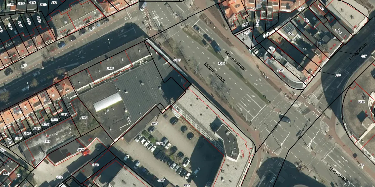 Het perceel waarop Mauritsstraat 164 staat heeft een oppervlakte van 3137 m². Dit is een zeer groot perceel. De perceeloppervlakte wordt geregistreerd door het Kadaster. Gedetailleerde informatie over de maten van dit perceel kunt u vinden in het rapport Kadastrale kaart met maatvoering van Mauritsstraat 164.
