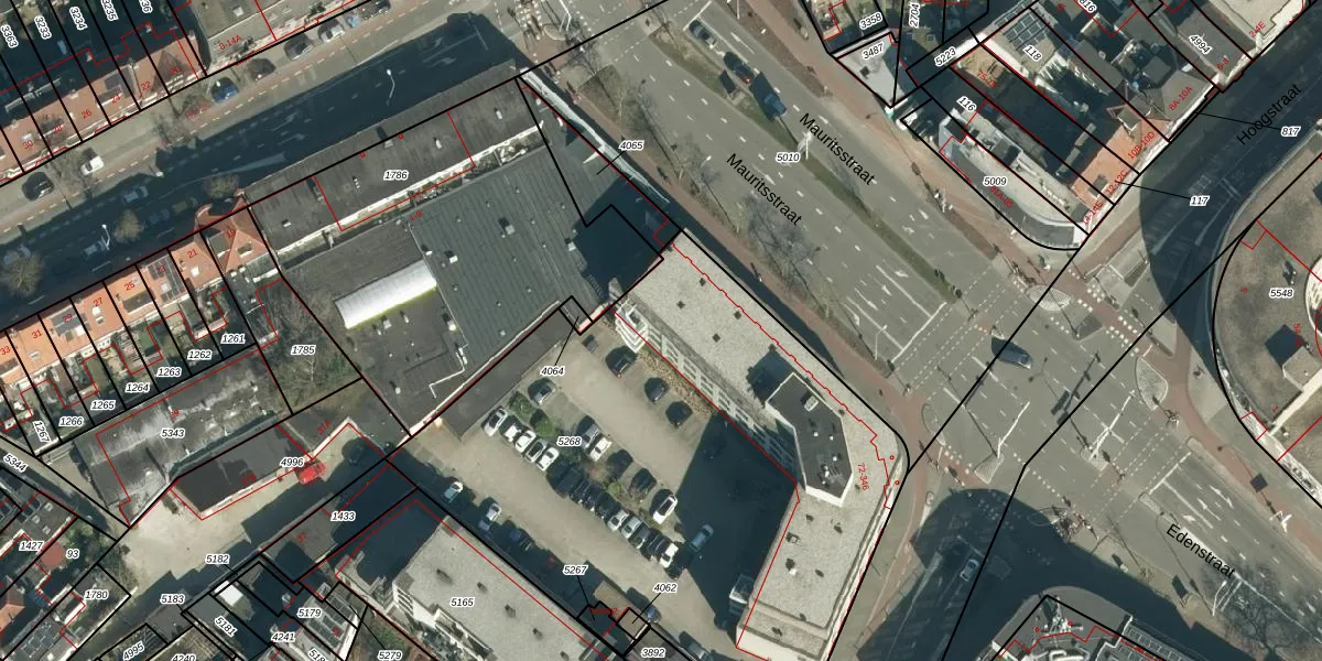Het perceel waarop Mauritsstraat 168 staat heeft een oppervlakte van 3137 m². Dit is een zeer groot perceel. De perceeloppervlakte wordt geregistreerd door het Kadaster. Gedetailleerde informatie over de maten van dit perceel kunt u vinden in het rapport Kadastrale kaart met maatvoering van Mauritsstraat 168.
