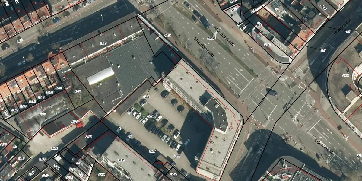 Het perceel waarop Mauritsstraat 170 staat heeft een oppervlakte van 3137 m². Dit is een zeer groot perceel. De perceeloppervlakte wordt geregistreerd door het Kadaster. Gedetailleerde informatie over de maten van dit perceel kunt u vinden in het rapport Kadastrale kaart met maatvoering van Mauritsstraat 170.