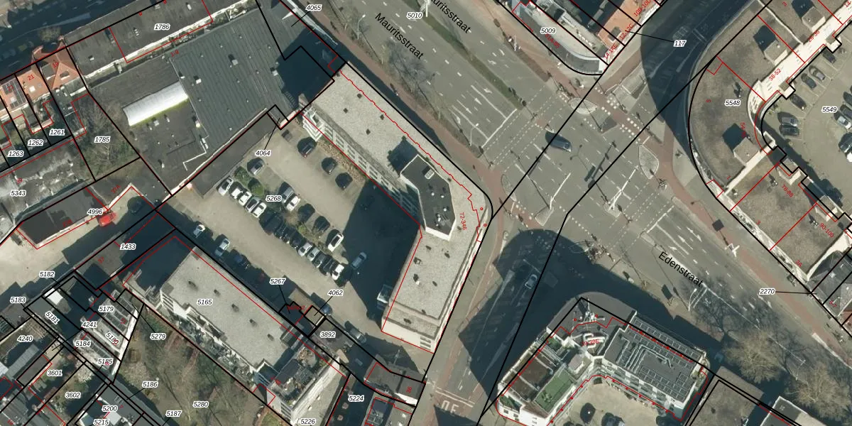 Het perceel waarop Mauritsstraat 184 staat heeft een oppervlakte van 3137 m². Dit is een zeer groot perceel. De perceeloppervlakte wordt geregistreerd door het Kadaster. Gedetailleerde informatie over de maten van dit perceel kunt u vinden in het rapport Kadastrale kaart met maatvoering van Mauritsstraat 184.