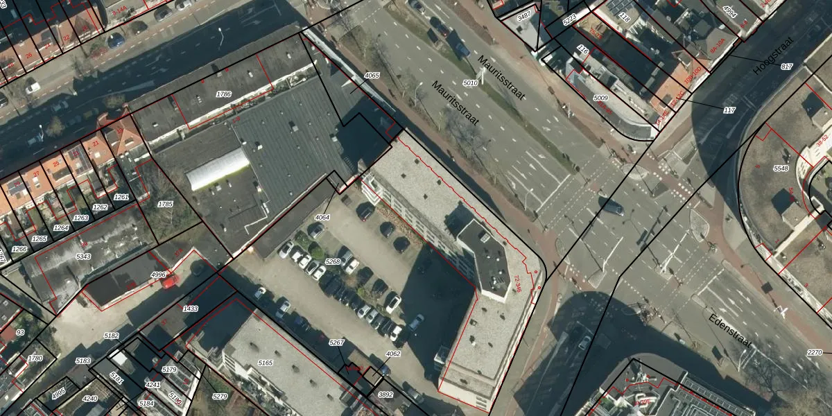 Het perceel waarop Mauritsstraat 244 staat heeft een oppervlakte van 3137 m². Dit is een zeer groot perceel. De perceeloppervlakte wordt geregistreerd door het Kadaster. Gedetailleerde informatie over de maten van dit perceel kunt u vinden in het rapport Kadastrale kaart met maatvoering van Mauritsstraat 244.