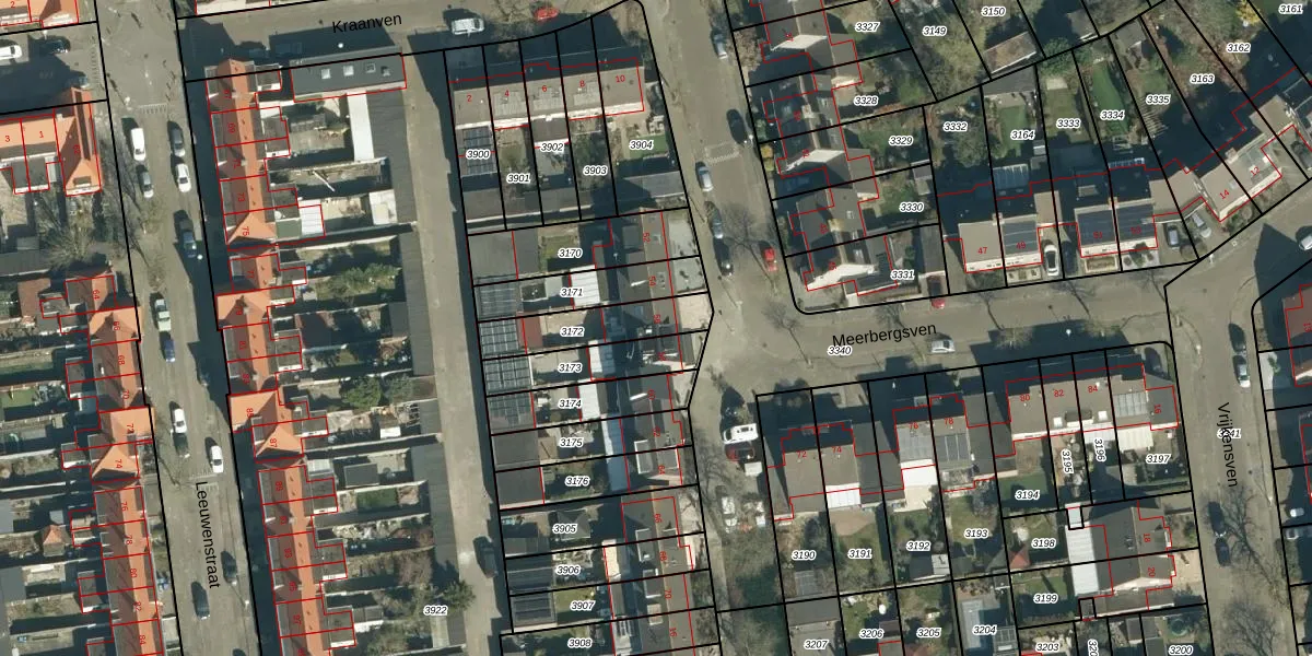 Gebruik de zoekbalk of klik op een perceel voor informatie over de adressen binnen dit perceel.