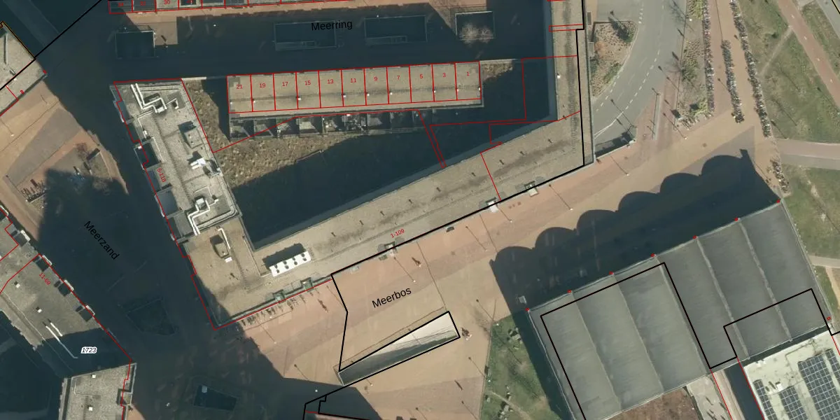 Het perceel waarop Meerbos 21 staat heeft een oppervlakte van 2,5 ha. Dit is een zeer groot perceel. De perceeloppervlakte wordt geregistreerd door het Kadaster. Gedetailleerde informatie over de maten van dit perceel kunt u vinden in het rapport Kadastrale kaart met maatvoering van Meerbos 21.