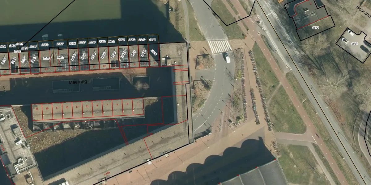 Het perceel waarop Meerbos 7-A staat heeft een oppervlakte van 2,5 ha. Dit is een zeer groot perceel. De perceeloppervlakte wordt geregistreerd door het Kadaster. Gedetailleerde informatie over de maten van dit perceel kunt u vinden in het rapport Kadastrale kaart met maatvoering van Meerbos 7-A.