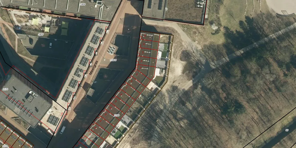 Het perceel waarop Meergras 18 staat heeft een oppervlakte van 2896 m². Dit is een zeer groot perceel. De perceeloppervlakte wordt geregistreerd door het Kadaster. Gedetailleerde informatie over de maten van dit perceel kunt u vinden in het rapport Kadastrale kaart met maatvoering van Meergras 18.