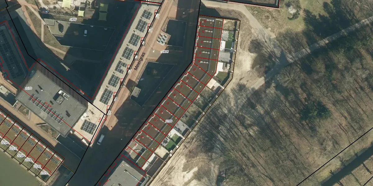 Het perceel waarop Meergras 24 staat heeft een oppervlakte van 2896 m². Dit is een zeer groot perceel. De perceeloppervlakte wordt geregistreerd door het Kadaster. Gedetailleerde informatie over de maten van dit perceel kunt u vinden in het rapport Kadastrale kaart met maatvoering van Meergras 24.
