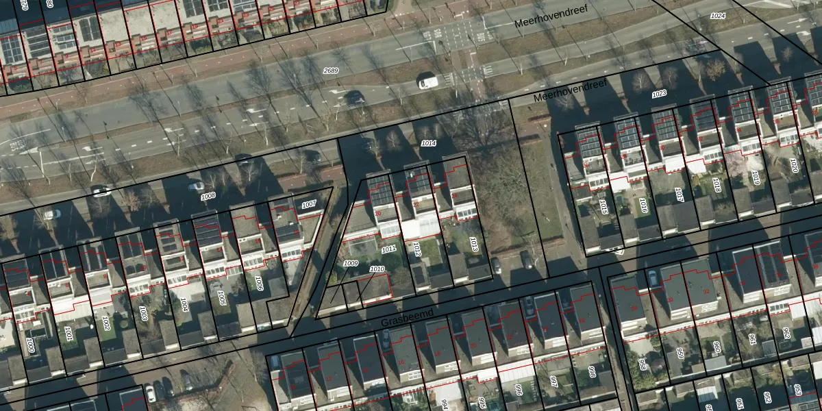 Meerhovendreef 22 is gelegen op kadastraal perceel STR03G1012. Deze kadastrale aanduiding is uniek en wordt gebruikt door het Kadaster om eigendomsrechten en andere zakelijke rechten vast te leggen. Het perceel maakt onderdeel uit van de kadastrale gemeente Strijp.