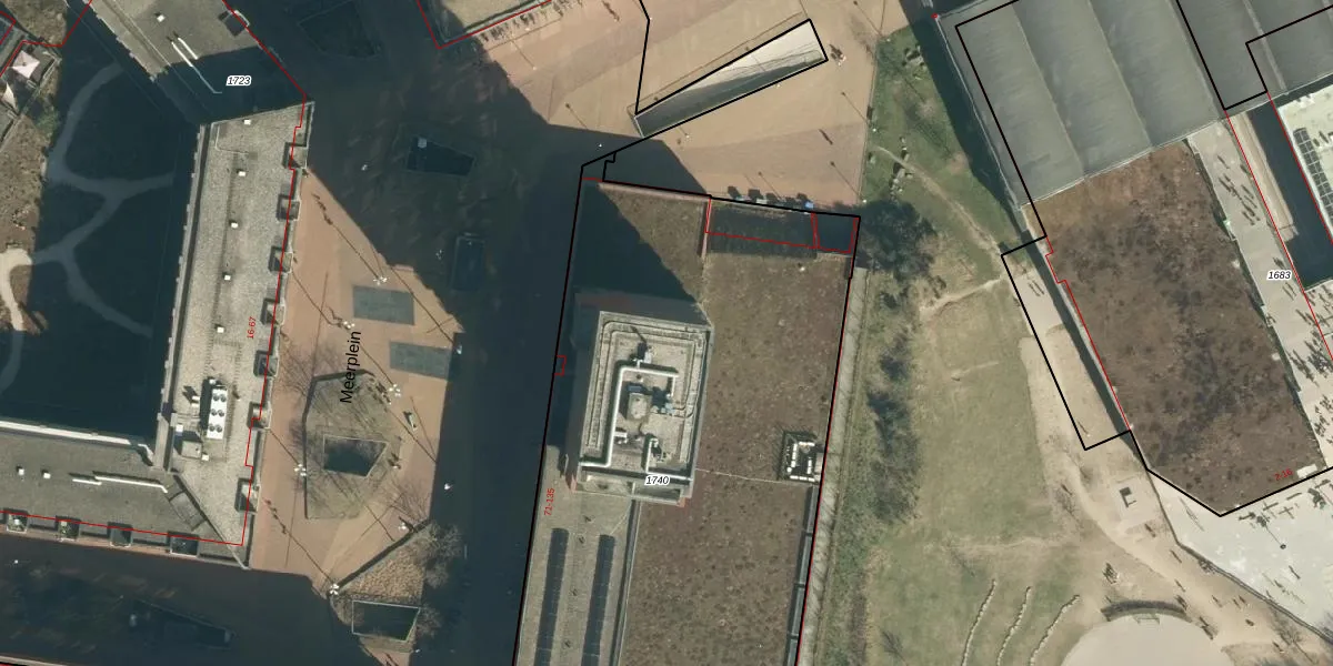 Het perceel waarop Meerplein 105 staat heeft een oppervlakte van 3990 m². Dit is een zeer groot perceel. De perceeloppervlakte wordt geregistreerd door het Kadaster. Gedetailleerde informatie over de maten van dit perceel kunt u vinden in het rapport Kadastrale kaart met maatvoering van Meerplein 105.