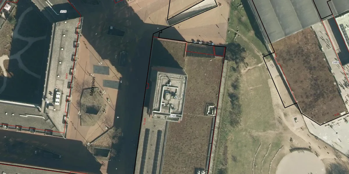 Het perceel waarop Meerplein 106 staat heeft een oppervlakte van 3990 m². Dit is een zeer groot perceel. De perceeloppervlakte wordt geregistreerd door het Kadaster. Gedetailleerde informatie over de maten van dit perceel kunt u vinden in het rapport Kadastrale kaart met maatvoering van Meerplein 106.