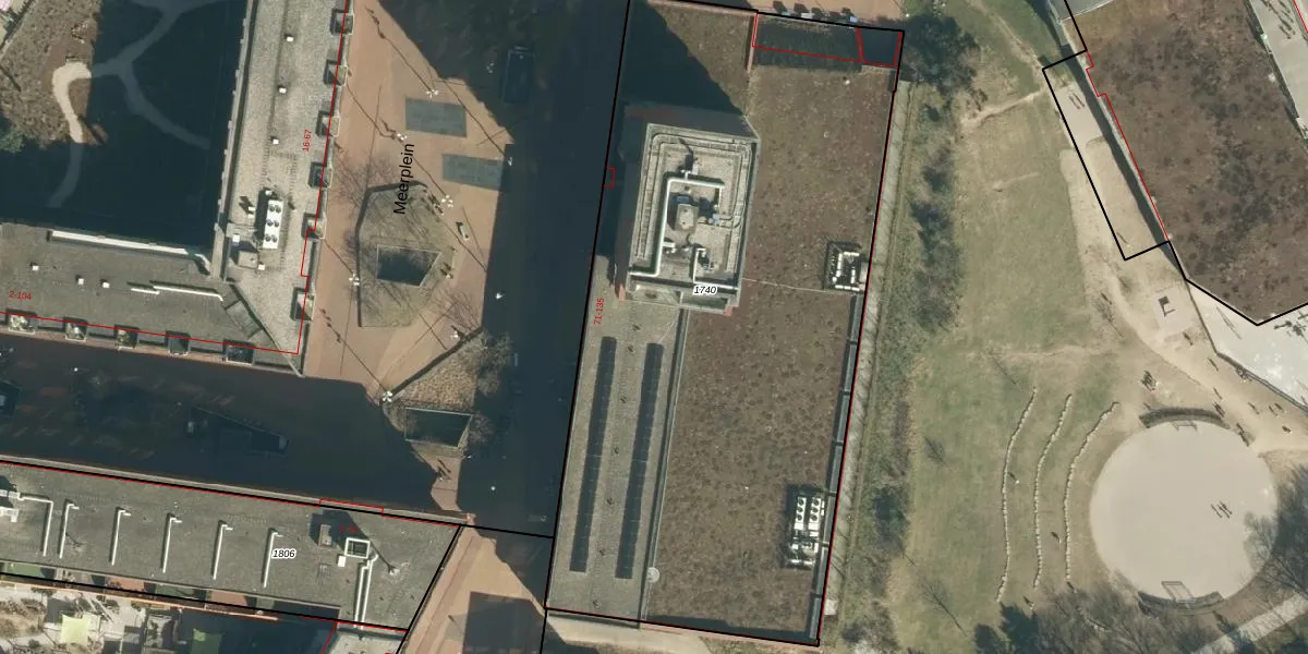 Het perceel waarop Meerplein 88 staat heeft een oppervlakte van 3990 m². Dit is een zeer groot perceel. De perceeloppervlakte wordt geregistreerd door het Kadaster. Gedetailleerde informatie over de maten van dit perceel kunt u vinden in het rapport Kadastrale kaart met maatvoering van Meerplein 88.